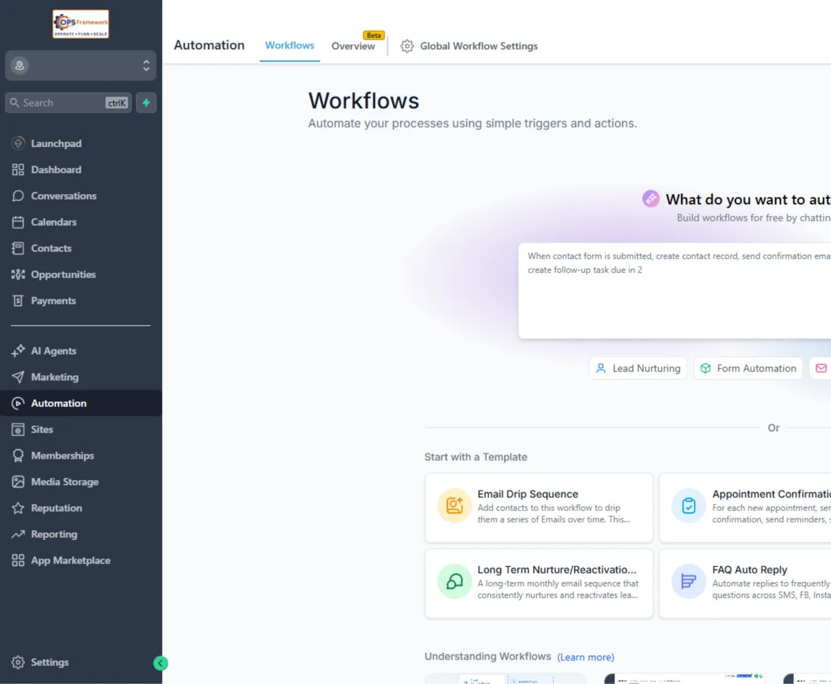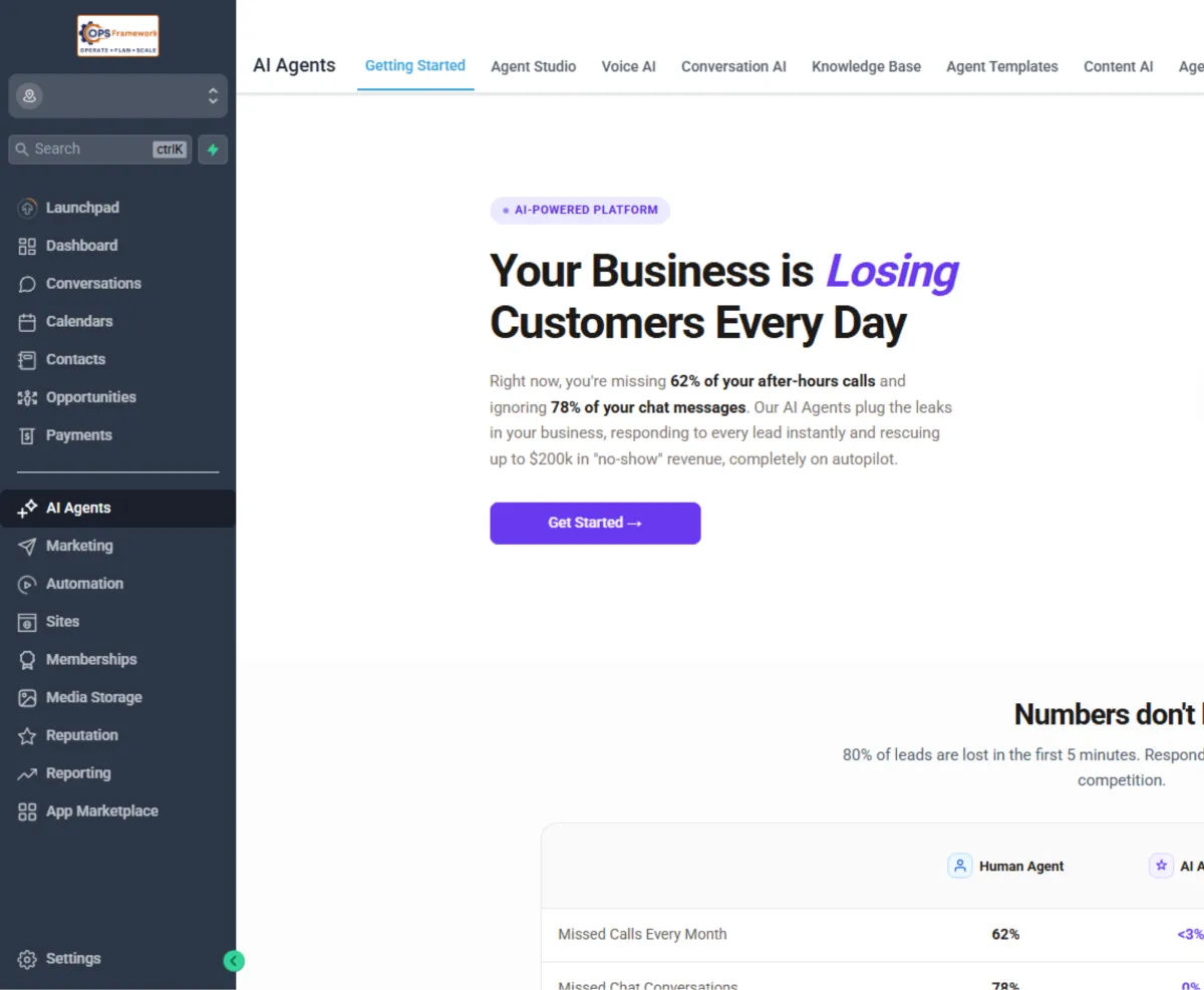 The OPS App powered by OPS Framework is an all-in-one business growth platform that replaces dozens of tools. It helps you capture leads, manage customers, automate follow-ups, boost your reputation, and grow your business, all from one simple dashboard.